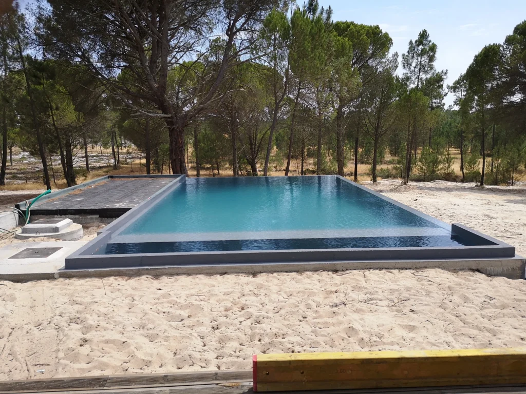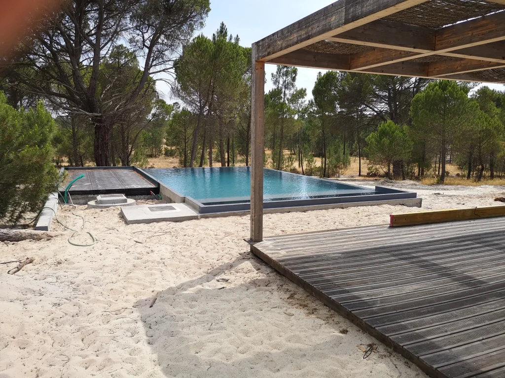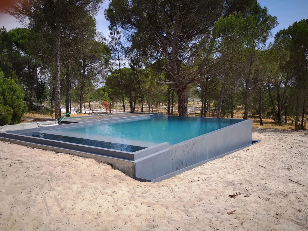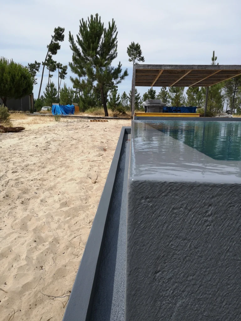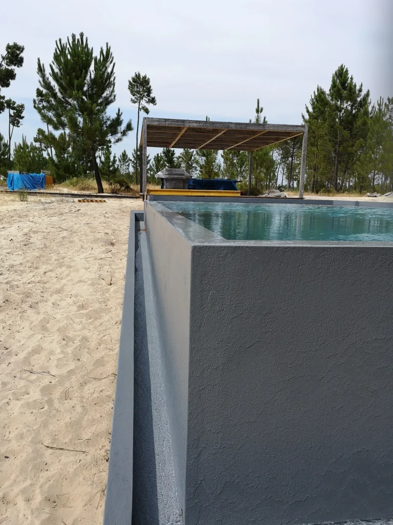 Home / Projectos / Piscinas / Piscina MudaPiscina Muda 2020-22 • Location Comporta Execução de piscina integrada no ambiente natural da Comporta, com especial cuidado nos acabamentos e na qualidade estrutural, garantindo durabilidade e perfeita harmonia com a arquitectura envolvente. Estruturas