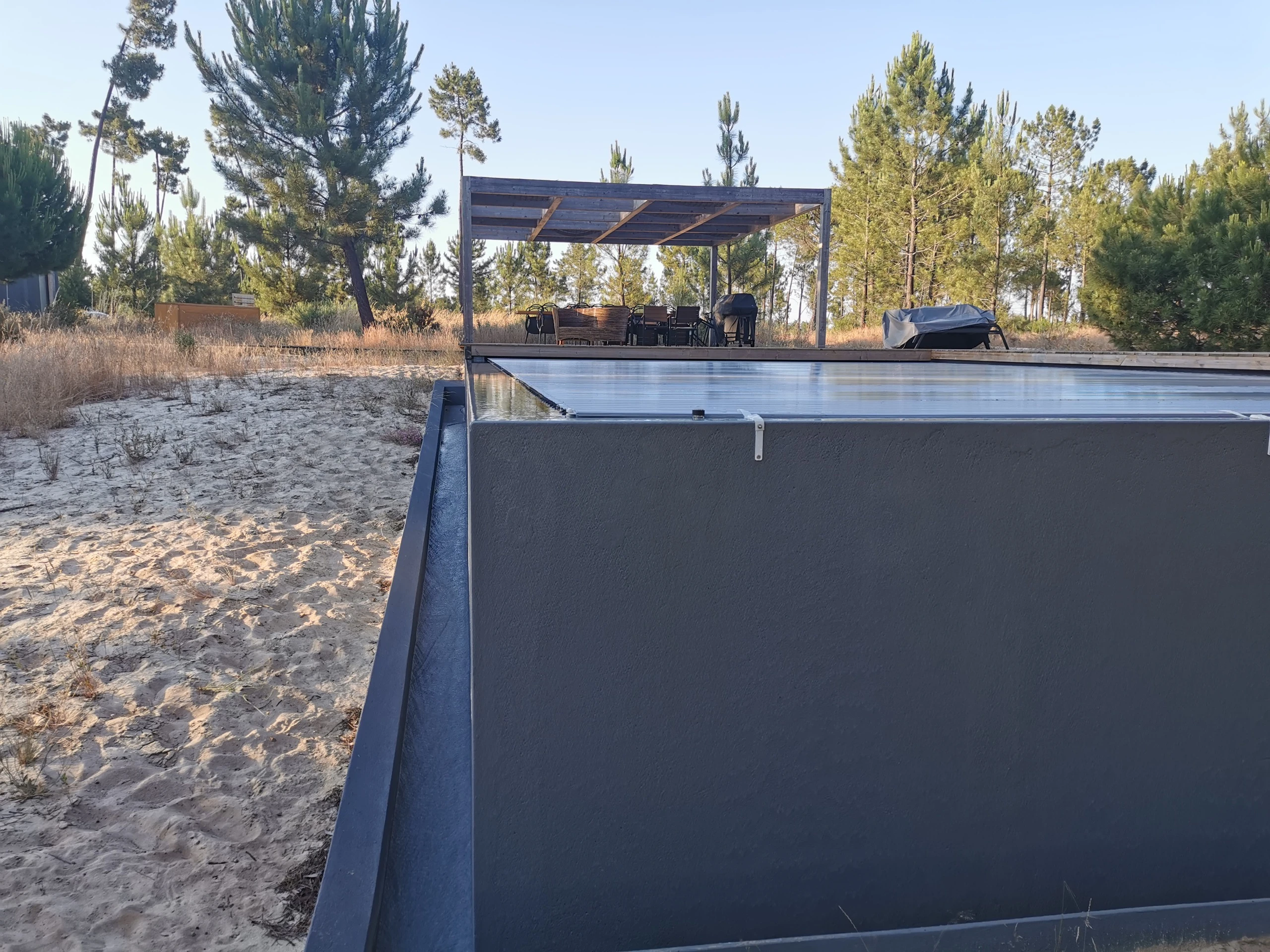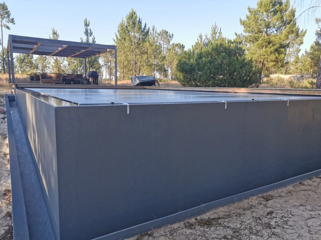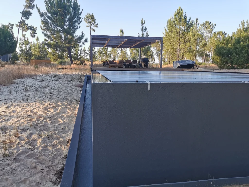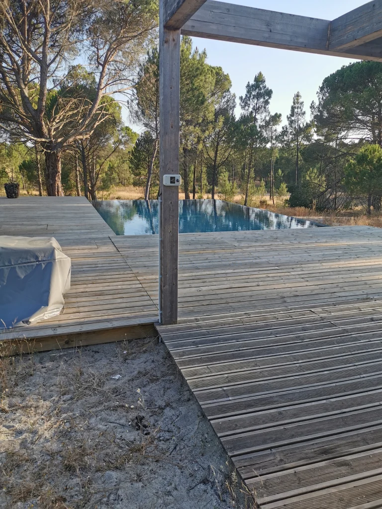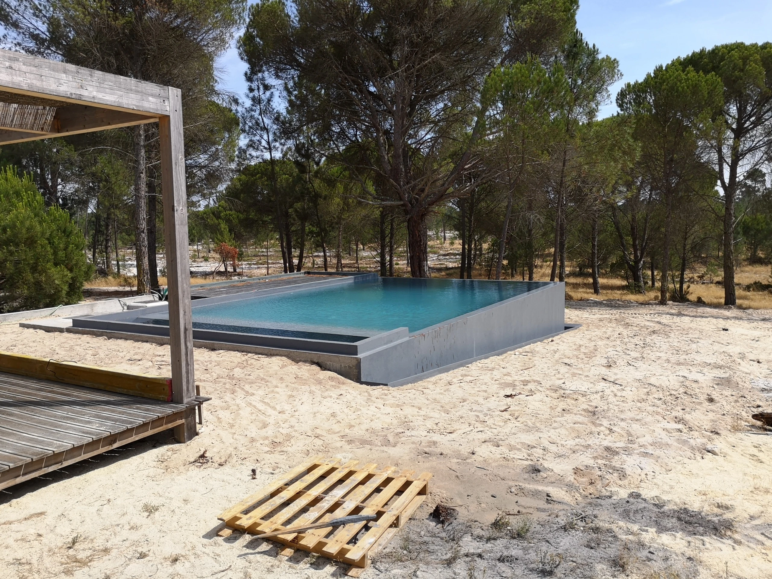 Home / Projectos / Piscinas / Piscina MudaPiscina Muda 2020-22 • Location Comporta Execução de piscina integrada no ambiente natural da Comporta, com especial cuidado nos acabamentos e na qualidade estrutural, garantindo durabilidade e perfeita harmonia com a arquitectura envolvente. Estruturas